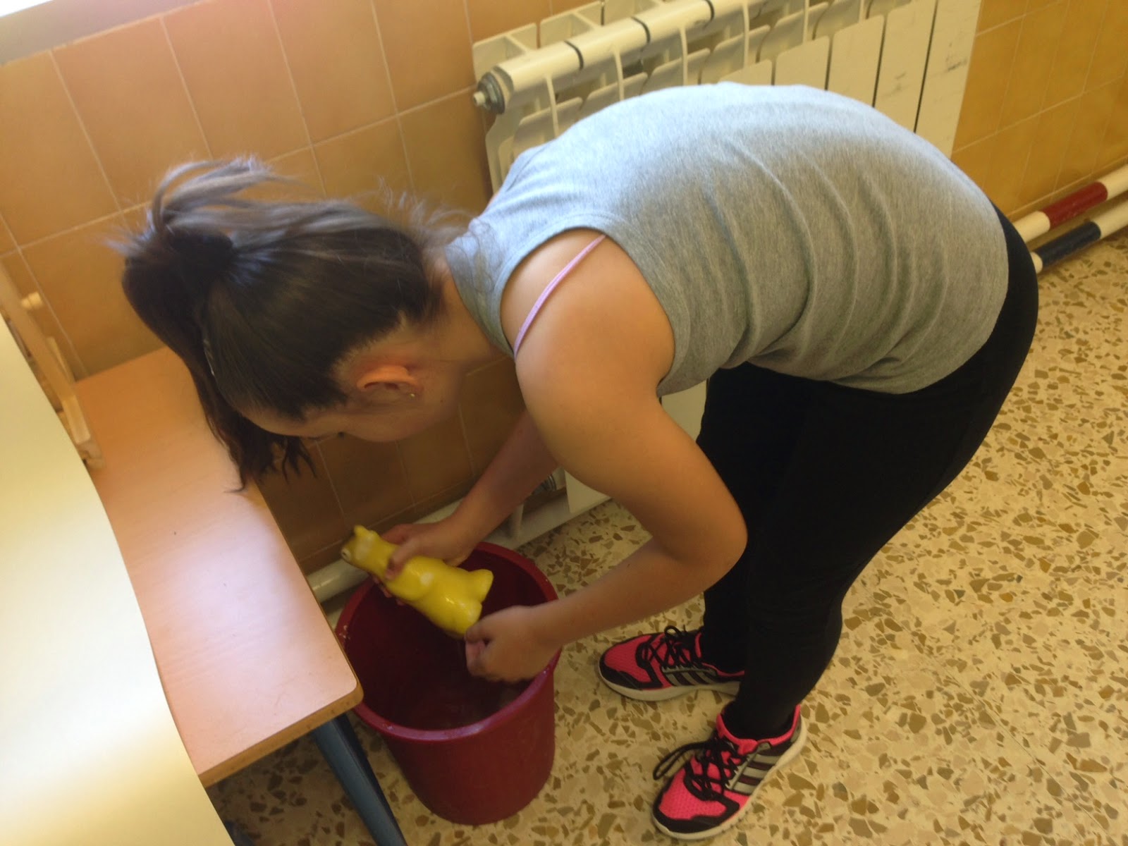 Como estaba mojado lo hemos puesto a secar en la ventana para que no mojase el suelo, pero antes lo secamos dándole golpecitos. Es de plástico y pesa un poco.